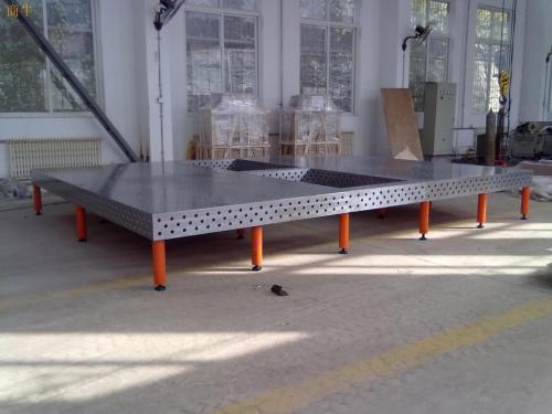三維柔性焊接平臺材質:鑄造件(HT300),進行整體退火熱處理消除內應力后放置三到六個月自然時效處理。